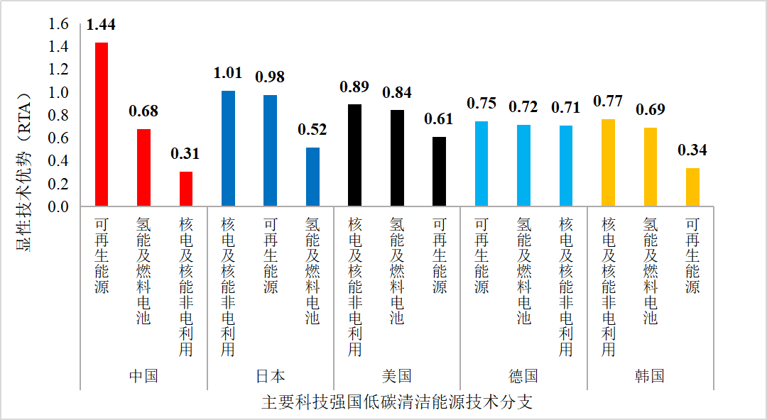 主要科技强国低碳清洁能源专利显性优势