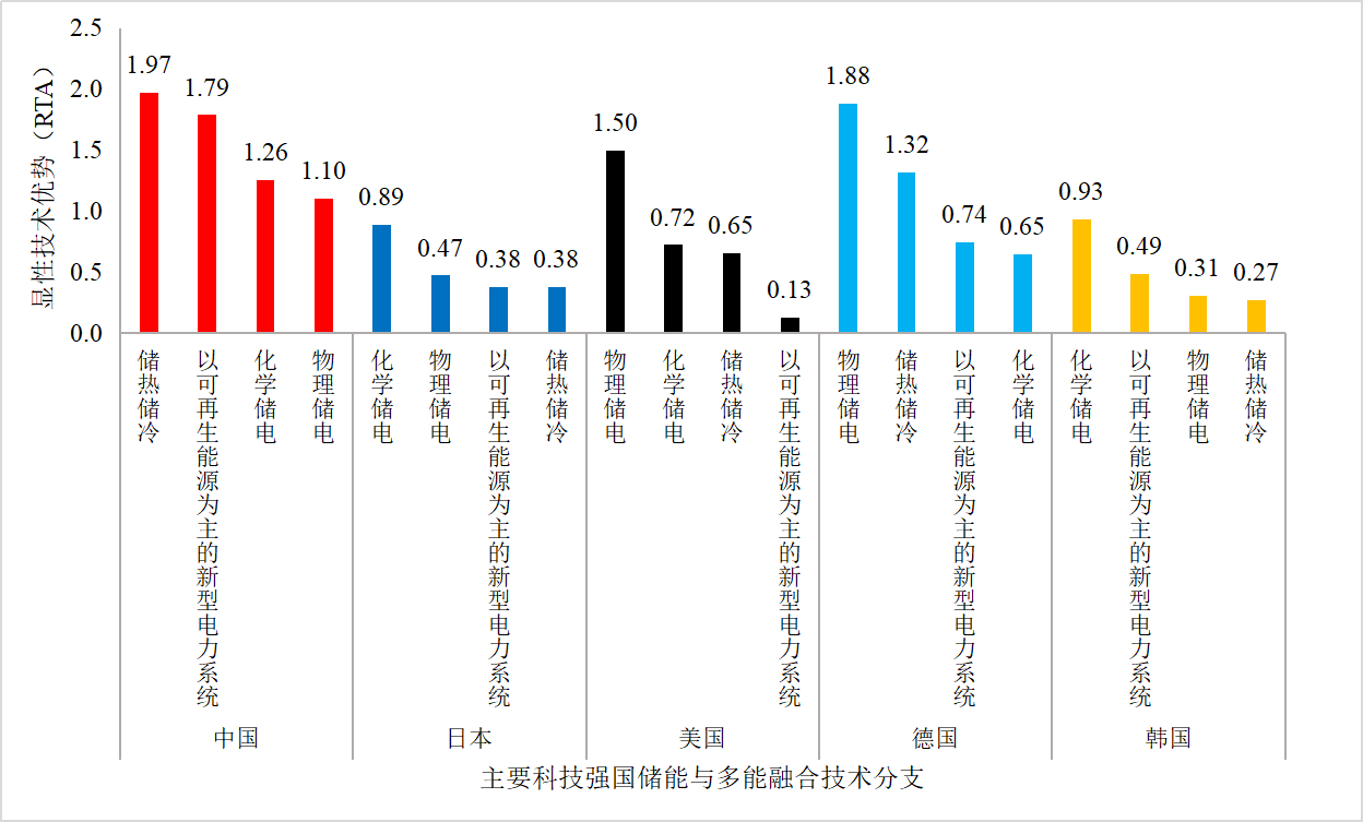 主要科技强国储能与多能融合技术专利显性优势