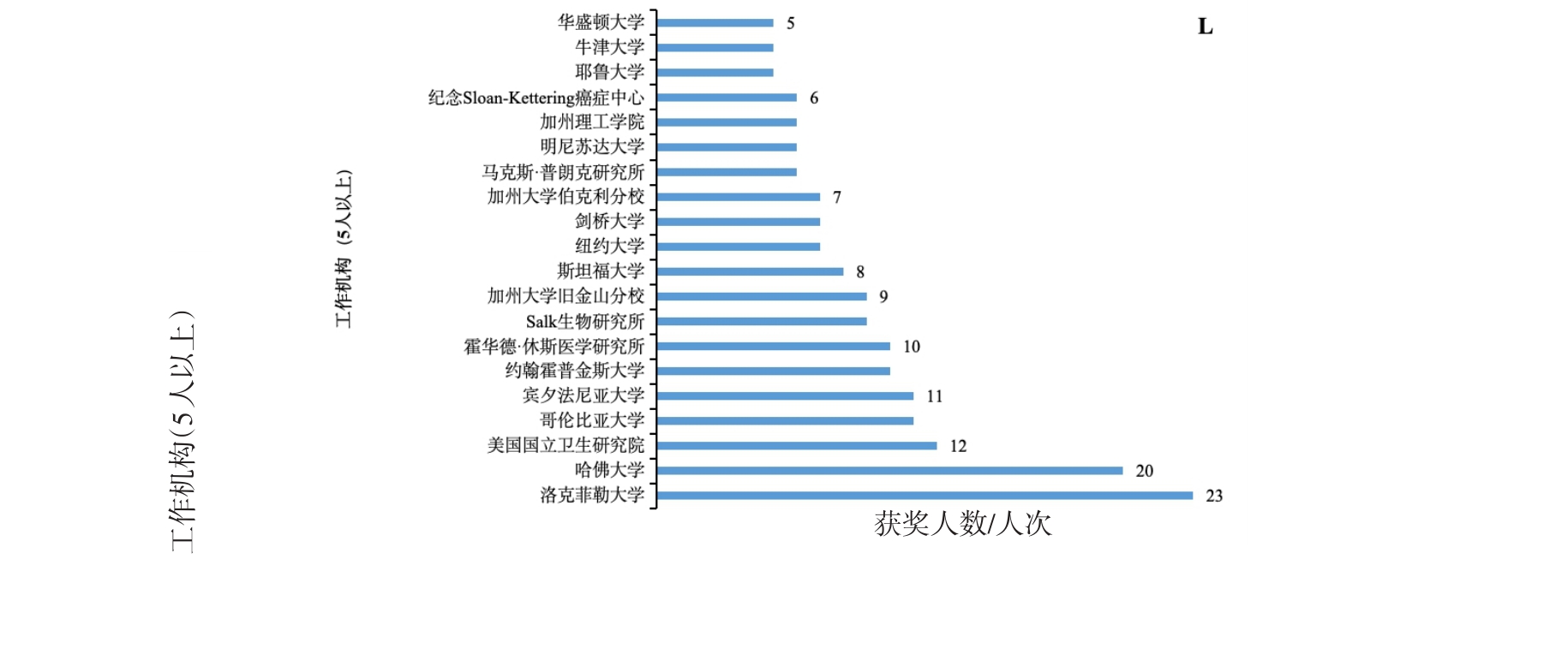 拉斯克奖科学家机构分布(获奖人数5人以上)